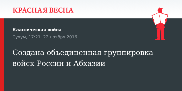 Согласно документу, опубликованному на портале, соглашение принято Государственной Думой 2 ноября и одобрено Советом Федерации 16 ноября 2016 года. В состав объединенной группировки со стороны ВС Абхазии вошли авиационная и артиллерийская группы, отряд спецназа, два отдельных мотострелковых батальона, а со стороны РФ — 7-я российская военная база.