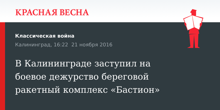 Дивизионом ракетного комплекса «Бастион» пополнилась группировка войск в Калининградском особом районе, 21 ноября по сообщению источника, знакомого с ситуацией, передает агентство Интерфакс.