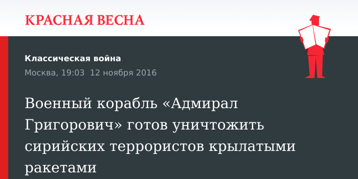 Военный корабль «Адмирал Григорович» готов уничтожить сирийских террористов крылатыми ракетами