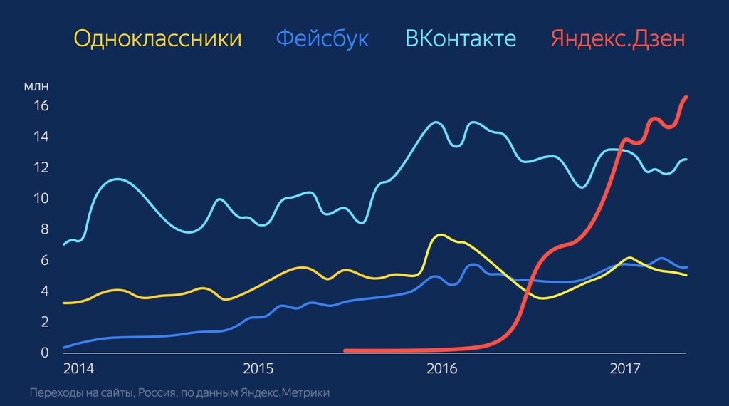 Напомним, «Яндекс.Дзен» — это рекомендательный сервис, который с помощью искусственного интеллекта анализирует предпочтения пользователя и формирует персональную ленту новостей, интересных для конкретного человека. «Яндекс.Дзен» уже обогнал все социальные сети по количеству переходов на сайты. С 2016 года он интегрирован в «Яндекс.Браузер».